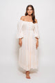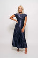 A classic shirt dress with tucks through the waistband and pleated edging at the collar. Signature Aje bell sleeves are met by buttoned cuffs and button closure down centre front perfectly balances the silhouette.