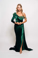This dress is crafted from luxurious silk fabric, offering a lustrous sheen and a soft touch that will make you feel like a vision of elegance.