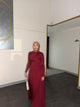 A sophisticated silhouette in airy linen, this baby blue one-shoulder gown is effortlessly elegant. Designed with a flattering ruched neckline and a sleek, floor-length cut with a side slit for graceful movement. Perfect for warm evenings, formal occasions, or destination events.