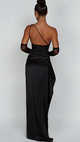 This dress is crafted from luxurious silk fabric, offering a lustrous sheen and a soft touch that will make you feel like a vision of elegance.