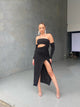 'Verona' gown by EFFIE KATS is so evocative of '90s glamour. Made from luxurious stretch-crepe, it has the decade's defining high neckline and simplistic silhouette. Complement the gown with a statement earring and hand held clutch.