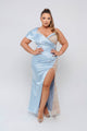 Crafted from high-quality satin fabric, this gown offers a luxurious and lustrous feel, creating a smooth and graceful silhouette. The rich royal blue color adds a regal touch, exuding confidence and elegance.