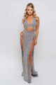 This beautiful and exquisite beaded gown is the perfect addition to your wardrobe for any special occasion. Crafted with care and attention, this dress features long sleeves adorned with delicate beading and a flattering aline hemline that elongates the body, giving you the ultimate elegant look. The lightweight fabric allows you to move seamlessly throughout the night.
