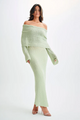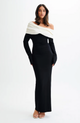 The KIKI Off Shoulder Knit Rose Maxi Dress exudes timeless sophistication. With an off-shoulder neckline and long sleeves, this bodycon dress beautifully contours the silhouette. The delicate flower applique adds a touch of romance, while the lightweight knit fabrication ensures a comfortable fit. Designed in a maxi length, this is a refined choice for your next rendezvous.