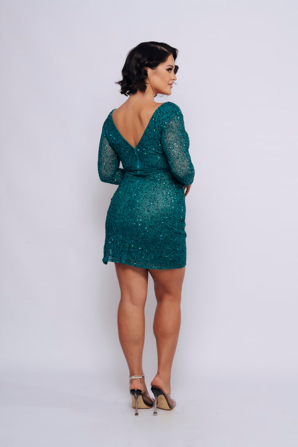 The low chest cut of this dress adds a touch of sensuality, while the sleeves provide an elegant and sophisticated look. The combination of these elements creates a perfect balance between allure and modesty, making it suitable for various occasions.