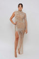 A captivating and versatile piece that combines intricate details with modern style. This dress is designed to make a statement, with its stunning embroidery and unique detachable choker.