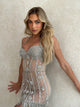 Embrace the sophistication of the fitted silhouette, the ethereal allure of the nude colour, and the enchanting sparkle of the silver embroidery as you make a grand entrance and captivate the crowd. PRICE INCLUDES ATTACHMENT.