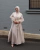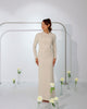 The MARCEL is a fitted maxi dress with a straight skirt and long sleeves. The off-shoulder neckline pairs perfectly with the fabric overlay over the bust, while the long sleeves have been designed to cinch to your arms before transitioning into flared hems around the wrist and palm. Adorned with rhinestones, Marcel's stretchable material promises both comfort and shimmer.