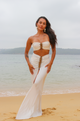 Turn heads in this stunning two-piece set, available exclusively for hire at My Secret Wardrobe. Designed for elegance and versatility, this set features a ruched bandeau top with a matching high-waisted skirt, adorned with delicate embellishments for the perfect touch of glam.