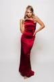 Set hearts ablaze in our fire red A-line gown, available for hire exclusively at My Secret Wardrobe. This captivating dress boasts beautiful red embellished detailing, adding a touch of glamour and sophistication, making it the perfect choice for a memorable evening or formal event.