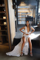 Our luxurious white net with white embroidery gown is like something right out of a fairy tale. Its luxurious aline finish gives it an exceptionally flowing silhouette while its bell sleeves add a touch of sparkle and glamour.
