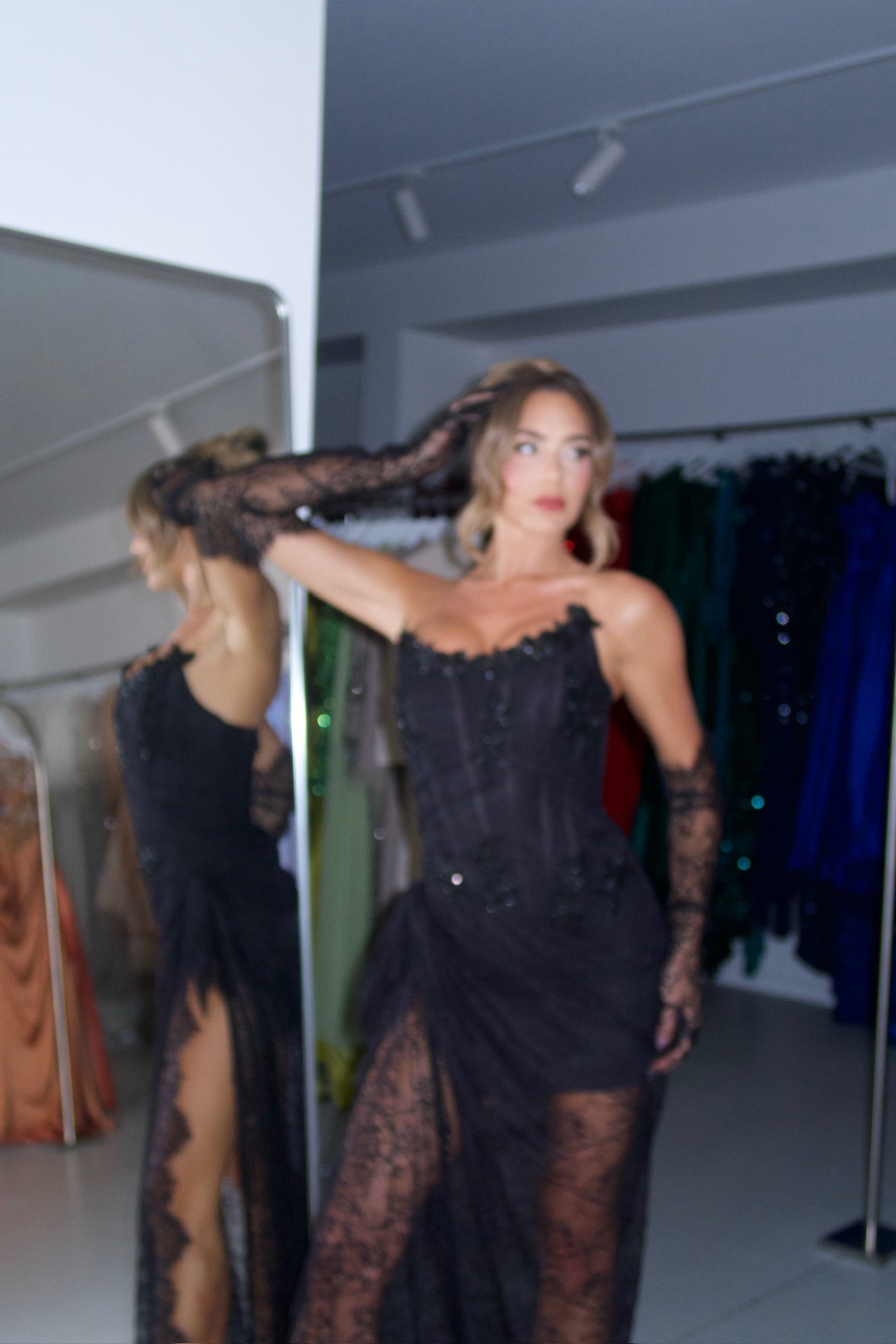 Embrace elegance in every stride with this Lace Strapless Maxi Dress! The Rouge Lace Strapless Maxi Dress exudes timeless elegance, featuring all-over black lace and a flattering, slimming strapless silhouette. The maxi length accentuates its sophistication, making it ideal for formal occasions. Pair it with a matching necklace and high heels for a truly refined look.